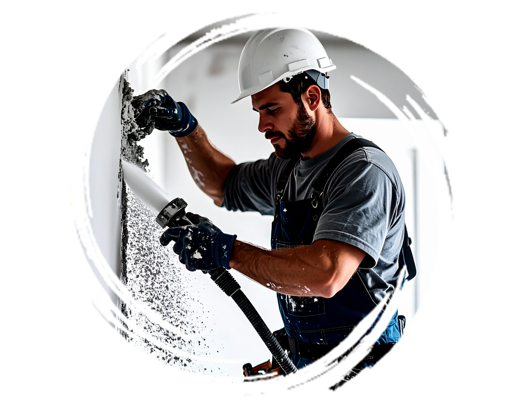 Основной этап: механизированное нанесение раствора и его выравнивание. Работы ведутся быстро и аккуратно, с соблюдением всех технологических норм